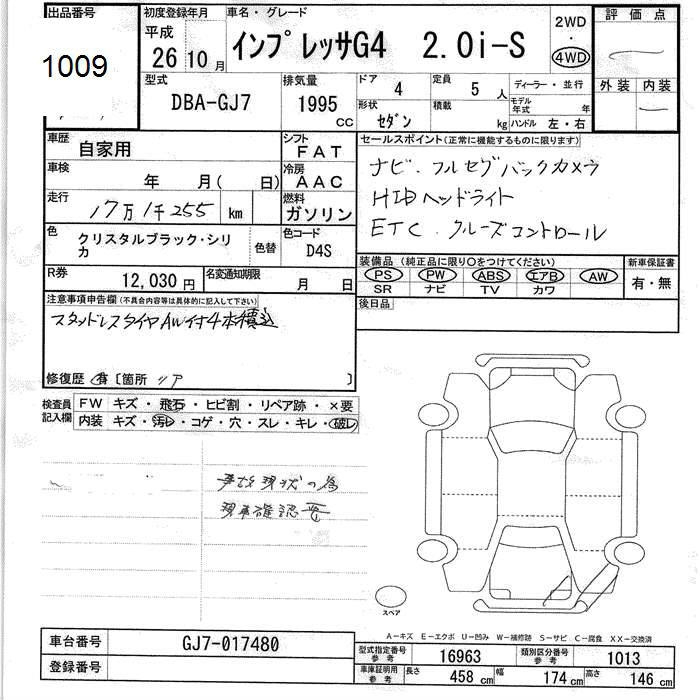 SUBARU IMPREZA G4 4WD 2.0i-S - лот 1009