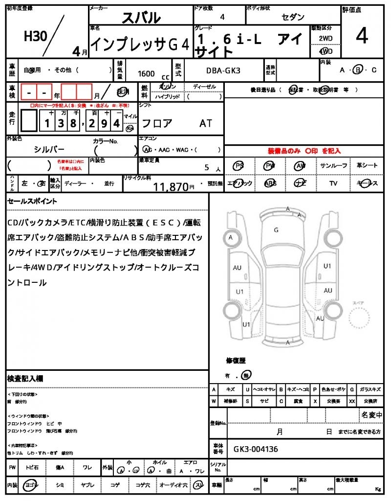 Все аукционы SUBARU IMPREZA G4