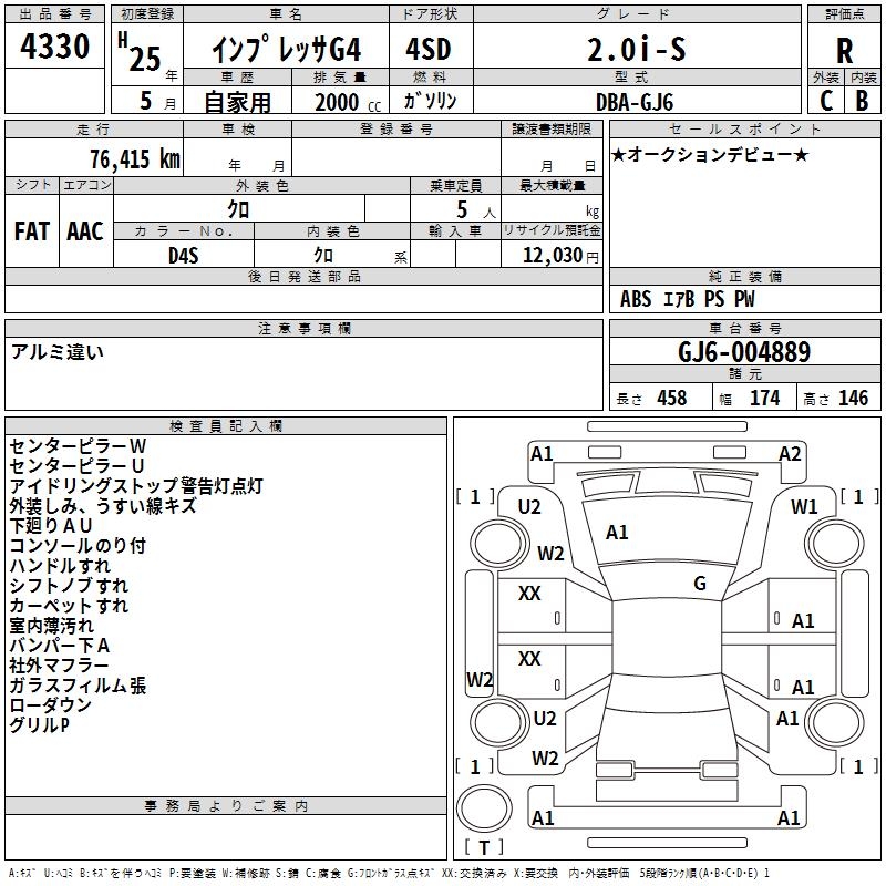 SUBARU IMPREZA G4 2.0i-S - лот 4330