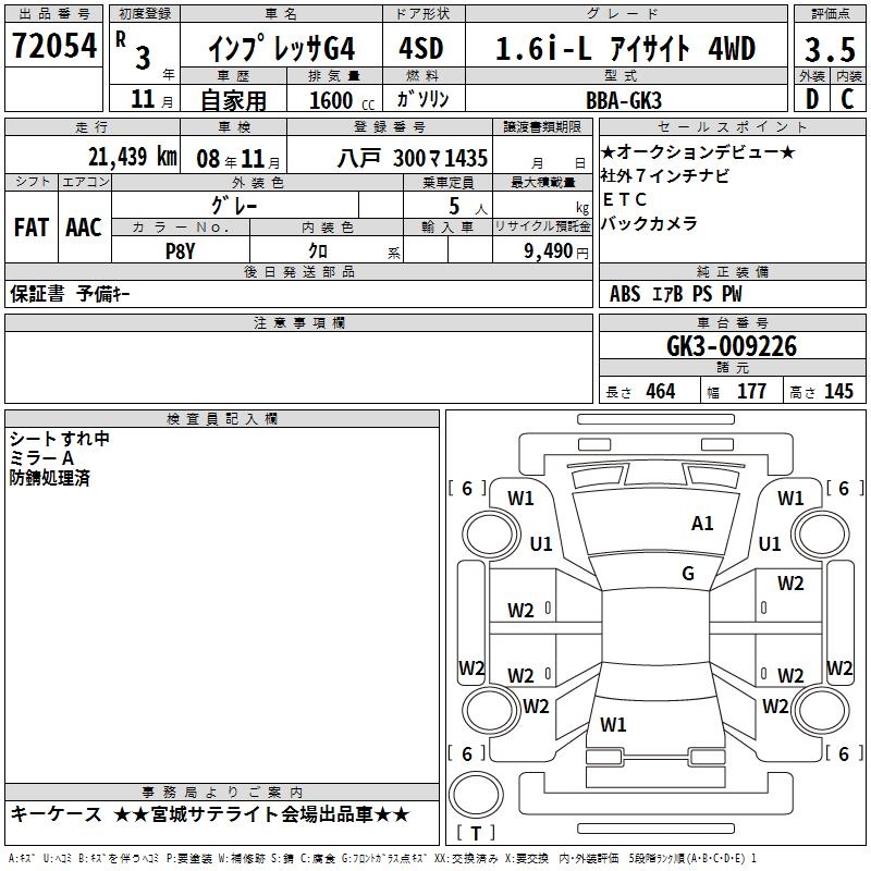 SUBARU IMPREZA G4 1.6I-L EYESIGHT 4WD - лот 72054