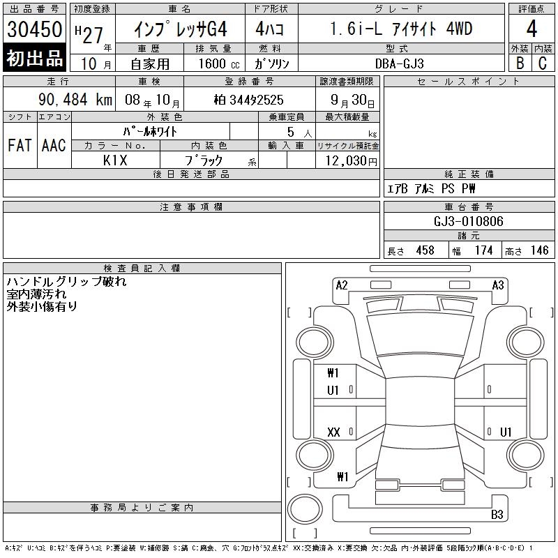 SUBARU IMPREZA G4 1.6I-L EYESIGHT 4WD - лот 30450