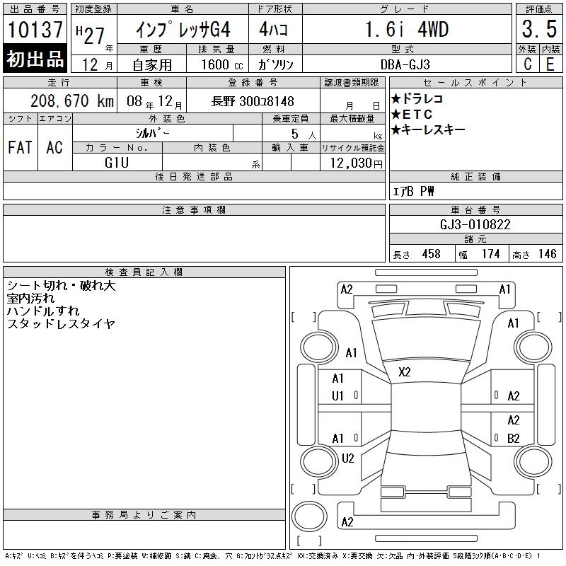 Все аукционы SUBARU IMPREZA G4