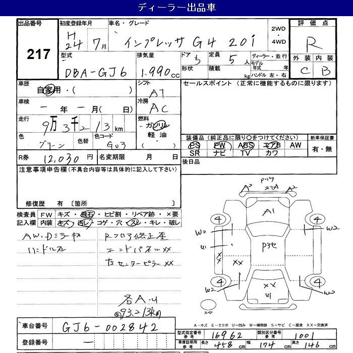 SUBARU IMPREZA G4 2.0i - лот 217