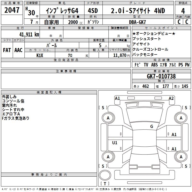 SUBARU IMPREZA G4 2.0I-S EYESIGHT 4WD - лот 2047