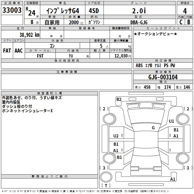 SUBARU IMPREZA G4 2.0i - лот 33003