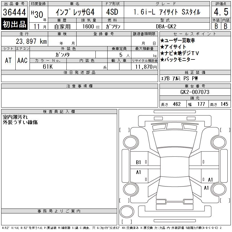 SUBARU IMPREZA G4 1.6I-L EYESIGHT S STYLE - лот 36444