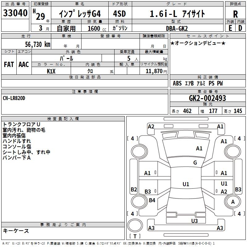 SUBARU IMPREZA G4 1.6I-L EYESIGHT - лот 33040