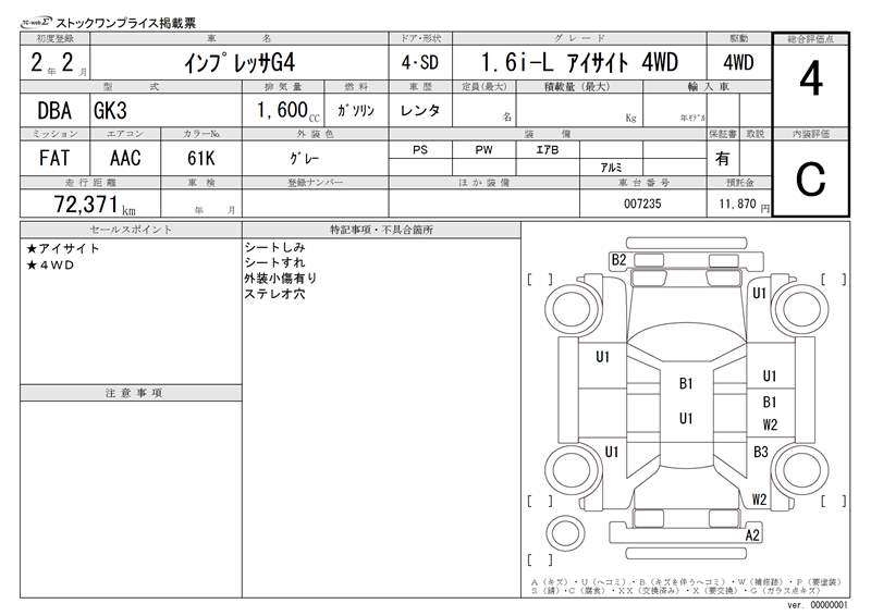 SUBARU IMPREZA G4 - лот 20378
