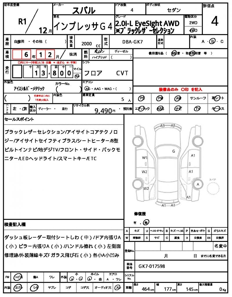 SUBARU IMPREZA G4 - лот 57168