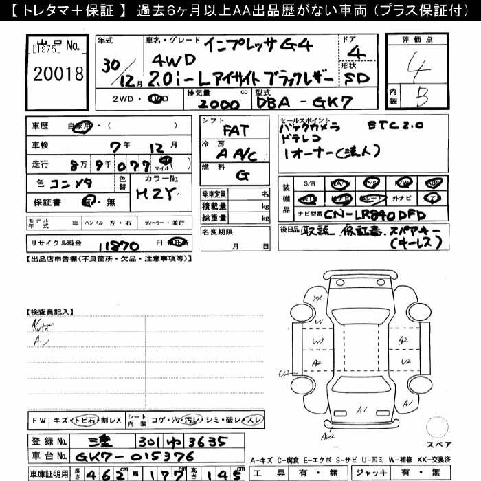 SUBARU IMPREZA G4 - лот 20018