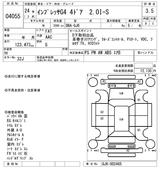 SUBARU IMPREZA G4 - лот 4055