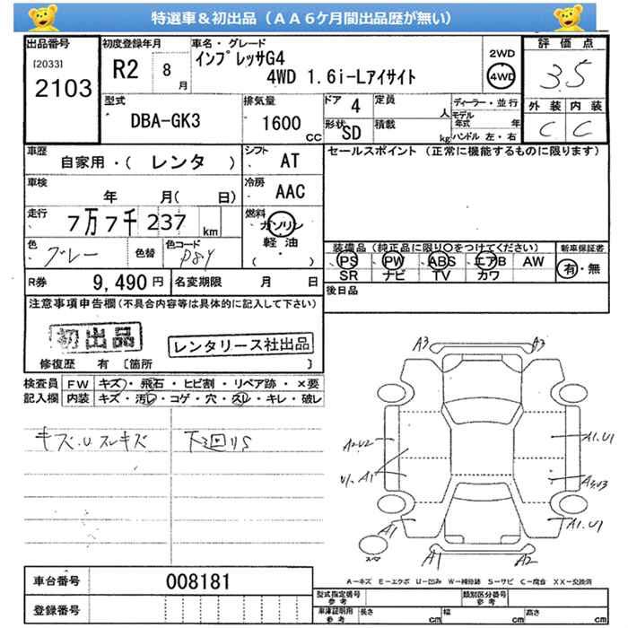 SUBARU IMPREZA G4 - лот 2103