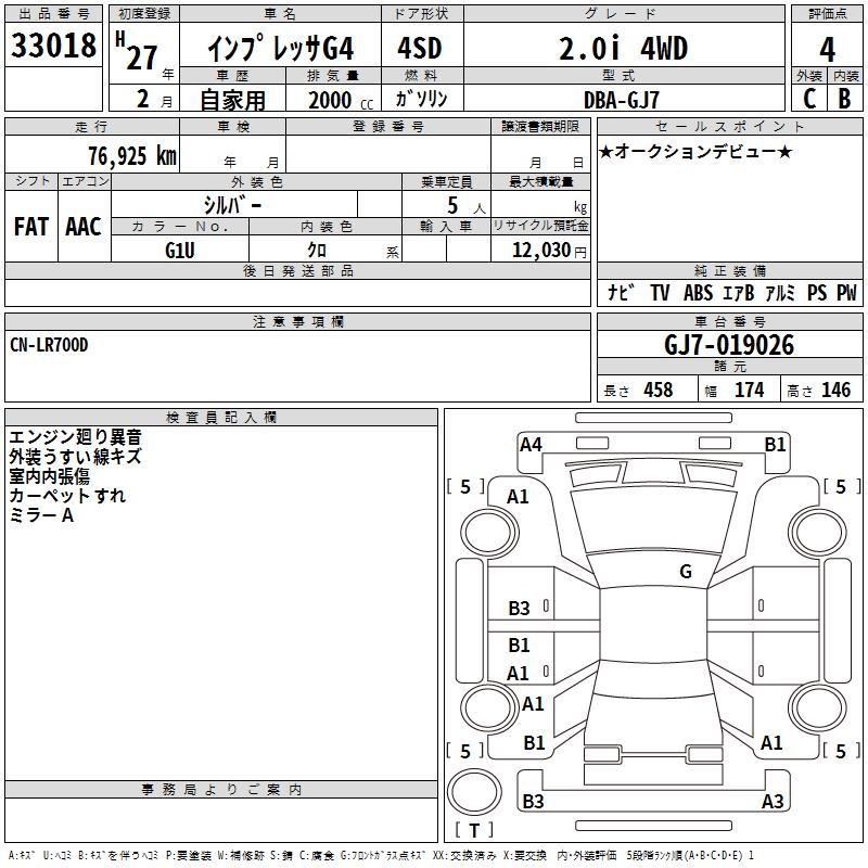 SUBARU IMPREZA G4 - лот 33018
