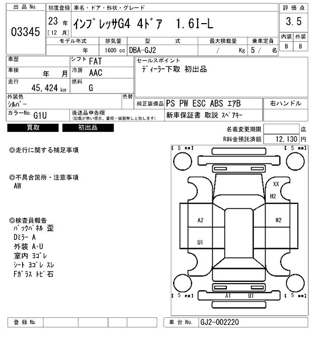 SUBARU IMPREZA G4 - лот 3345
