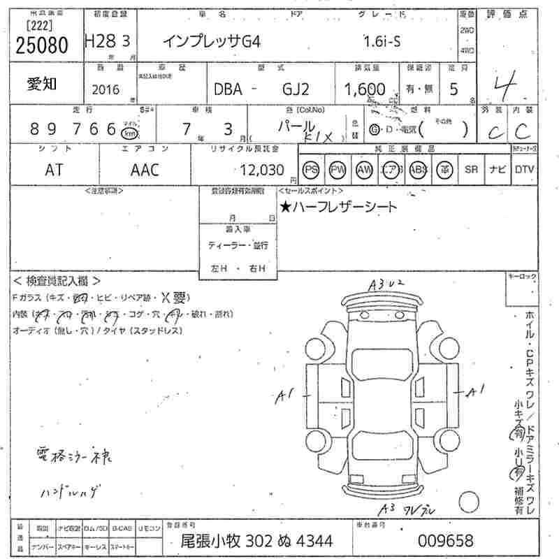 SUBARU IMPREZA G4 - лот 25080
