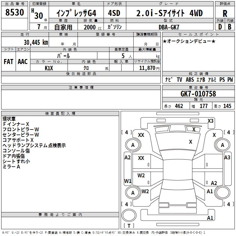 SUBARU IMPREZA G4 - лот 8530