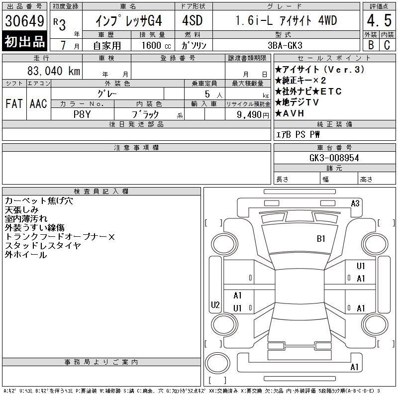 SUBARU IMPREZA G4 - лот 30649