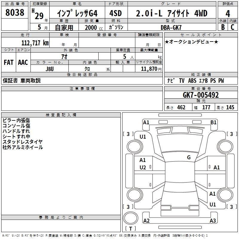 SUBARU IMPREZA G4 - лот 8038