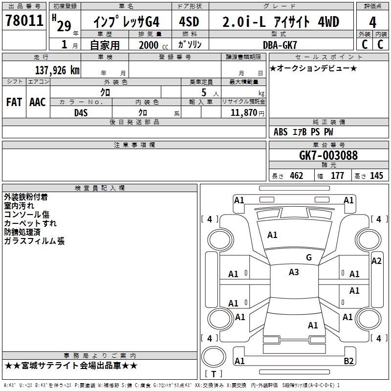 SUBARU IMPREZA G4 - лот 78011