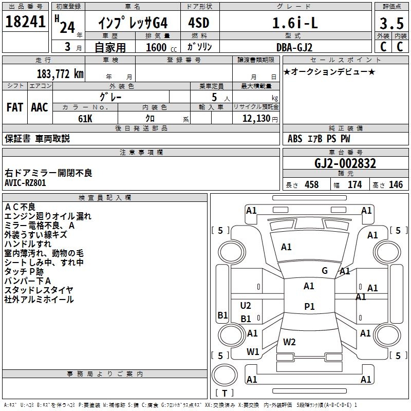 SUBARU IMPREZA G4 - лот 18241