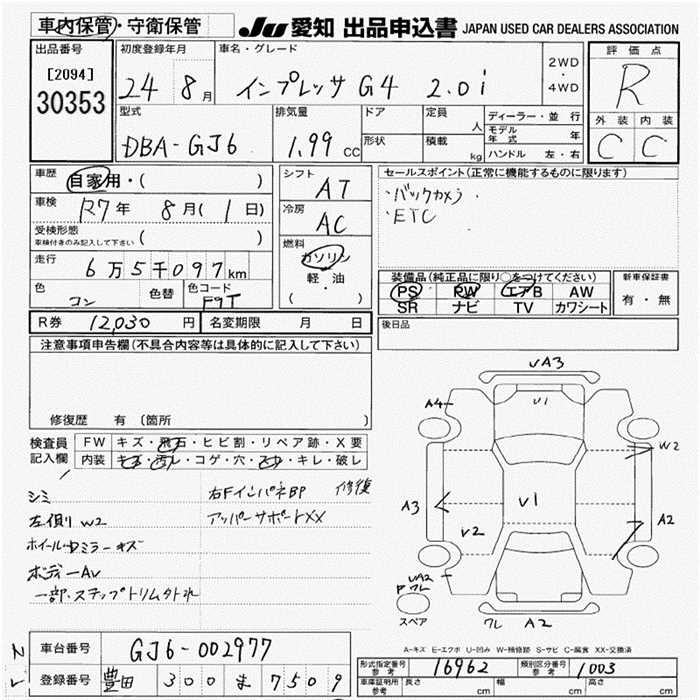 SUBARU IMPREZA G4 2.0i - лот 30353
