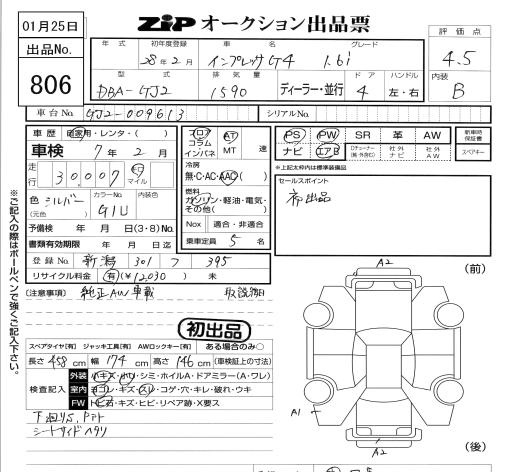 SUBARU IMPREZA G4 IMPREZA G4 1.6I - лот 806
