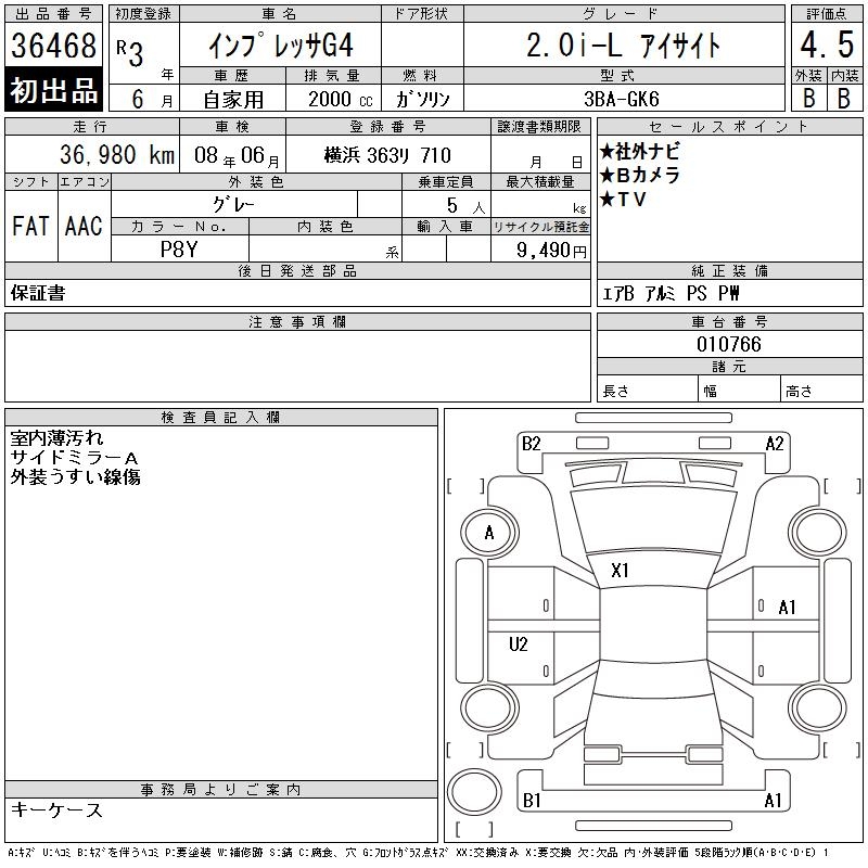 SUBARU IMPREZA G4 2.0I-L EYESIGHT - лот 36468
