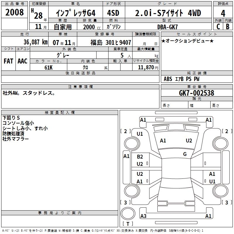 Все аукционы SUBARU IMPREZA G4