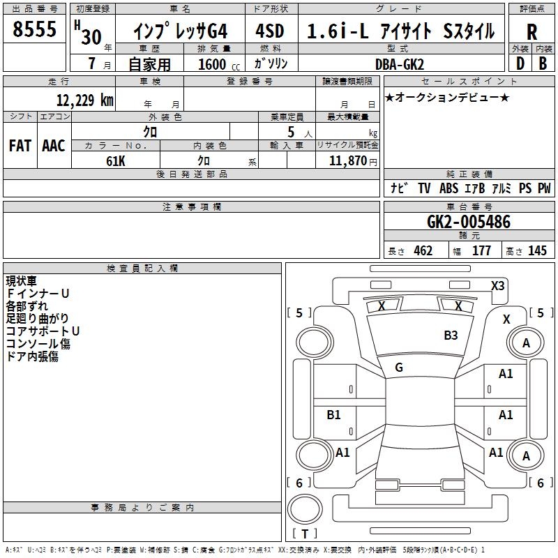 SUBARU IMPREZA G4 1.6I-L EYESIGHT S STYLE - лот 8555