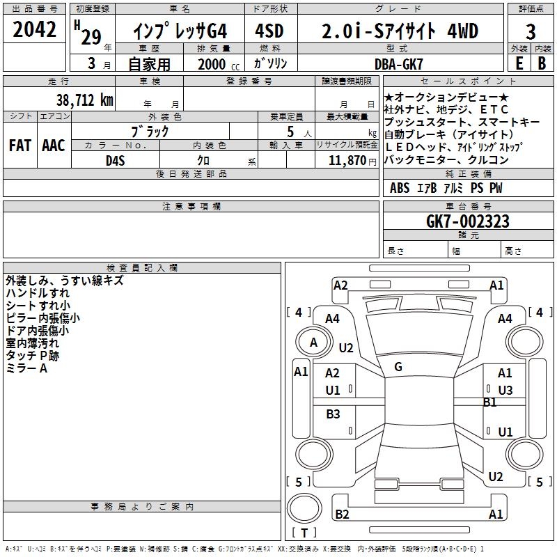 SUBARU IMPREZA G4 2.0I-S EYESIGHT 4WD - лот 2042