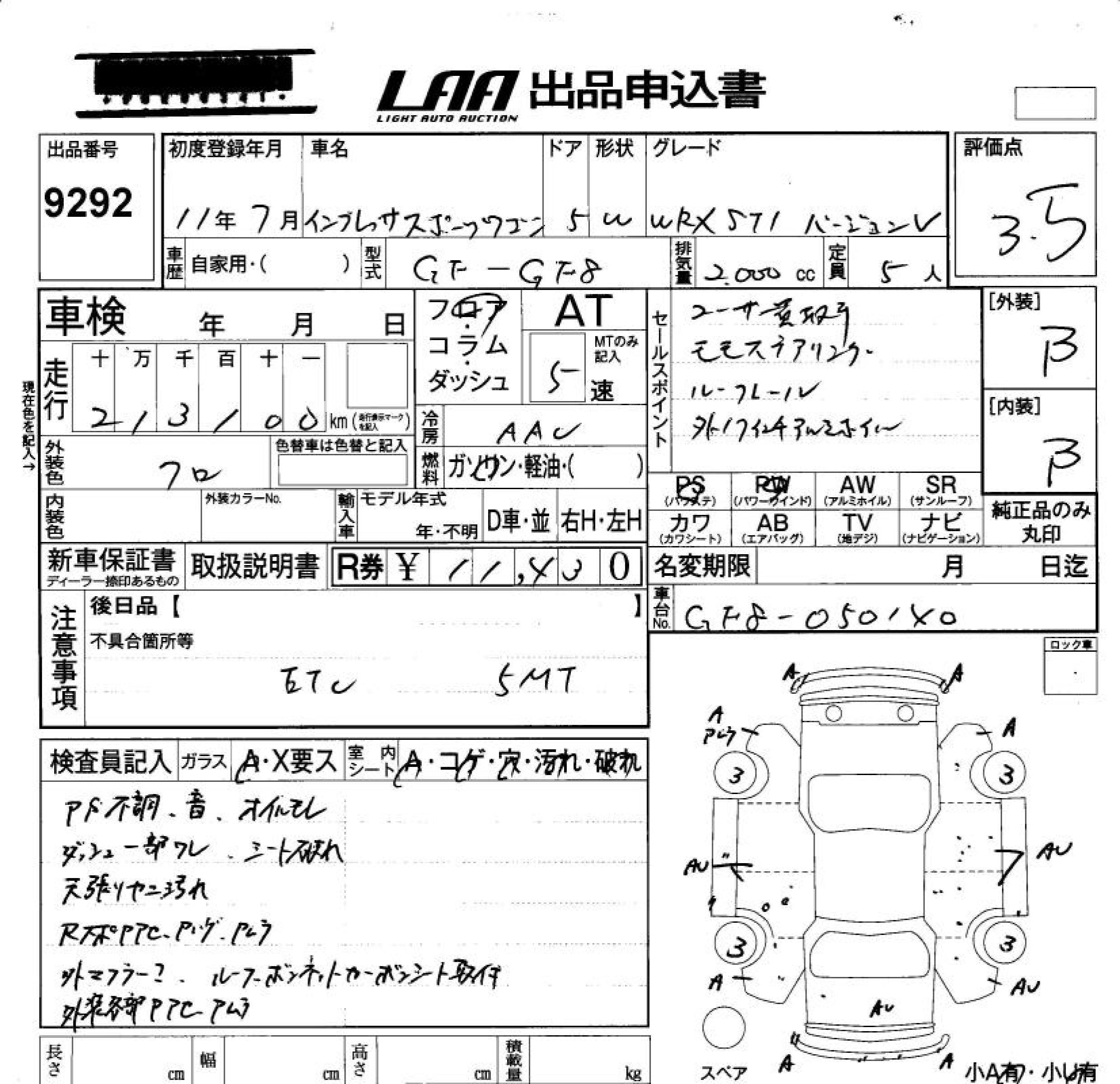 SUBARU IMPREZA SPORT WAGON - лот 9292