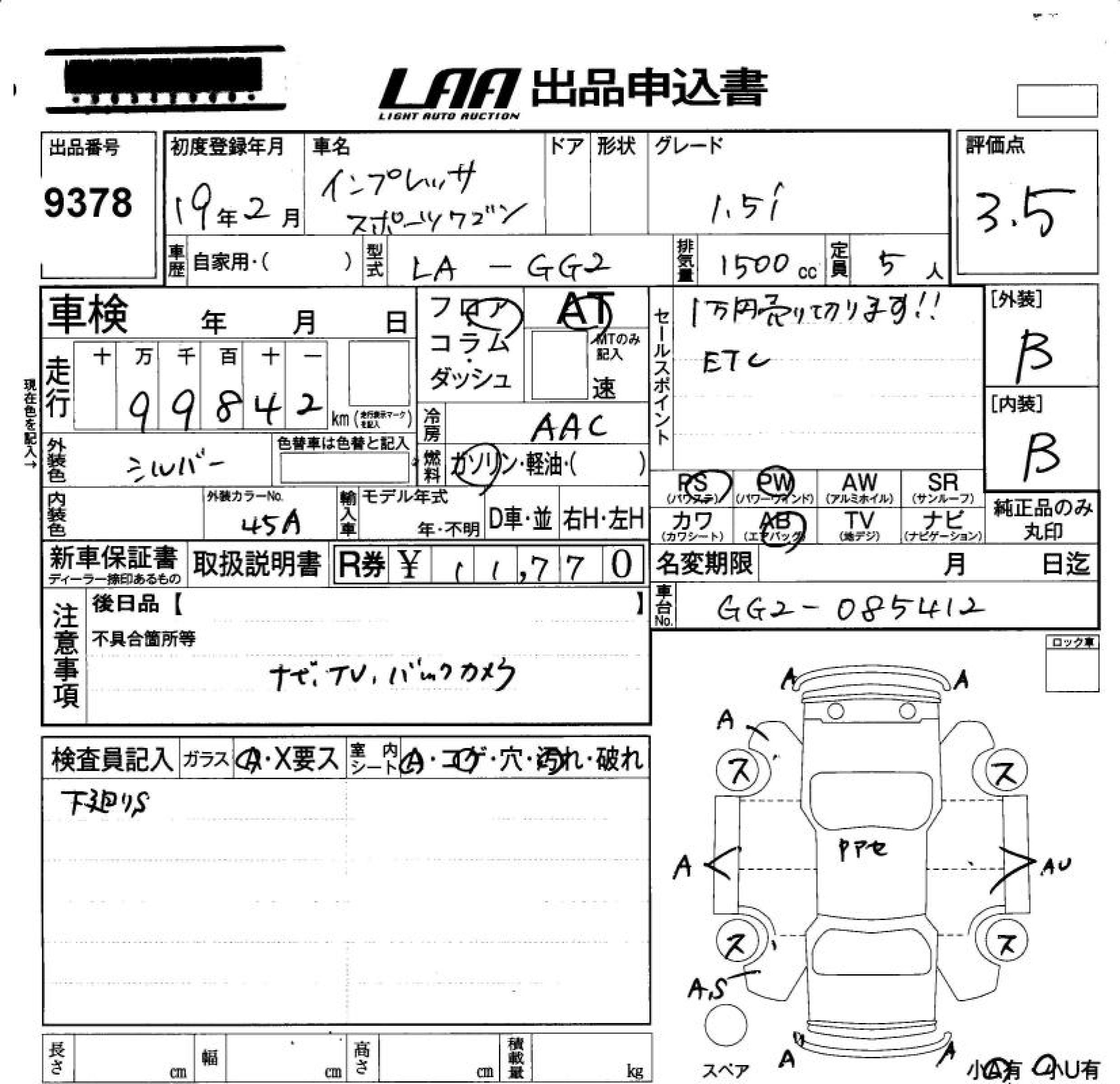 SUBARU IMPREZA SPORT WAGON - лот 9378