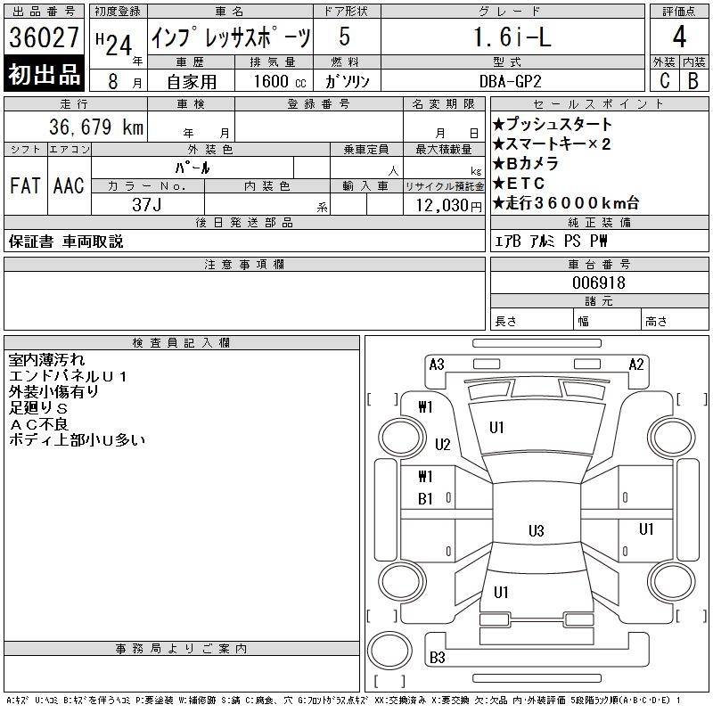 SUBARU IMPREZA SPORT - лот 36027