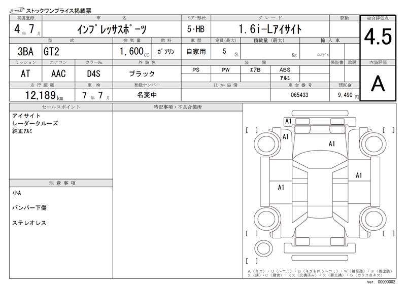 Все аукционы SUBARU IMPREZA SPORT