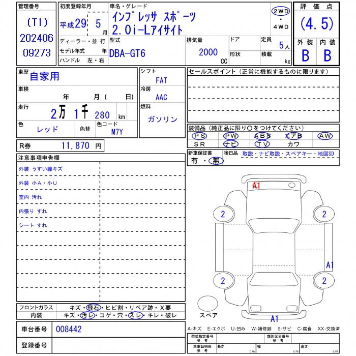 Все аукционы SUBARU IMPREZA SPORT