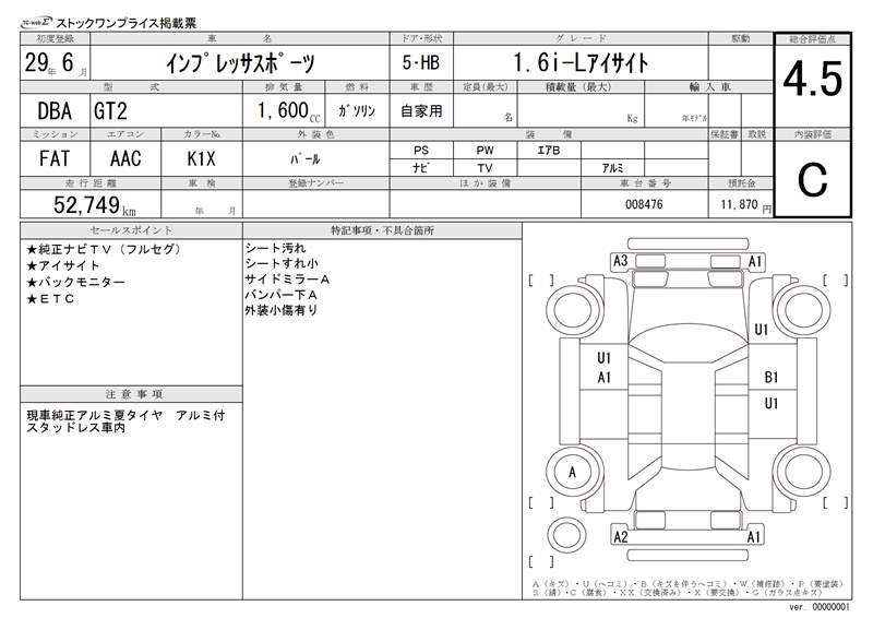 Все аукционы SUBARU IMPREZA SPORT