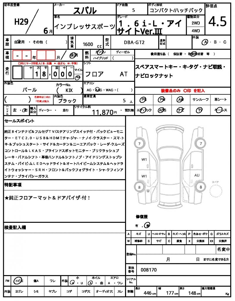 Все аукционы SUBARU IMPREZA SPORT