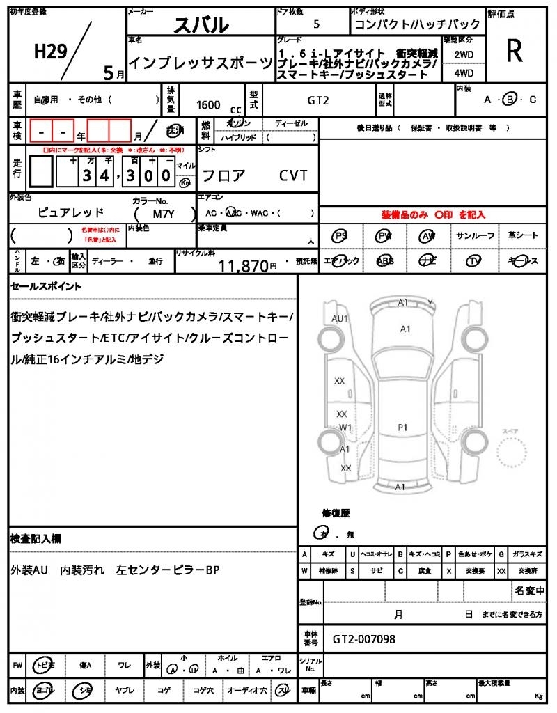 Все аукционы SUBARU IMPREZA SPORT