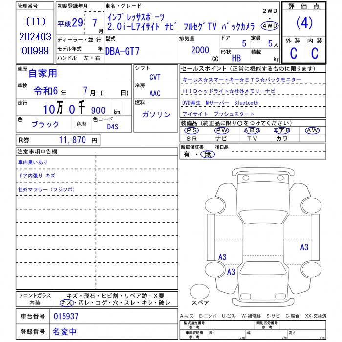 SUBARU IMPREZA SPORT - лот 11051