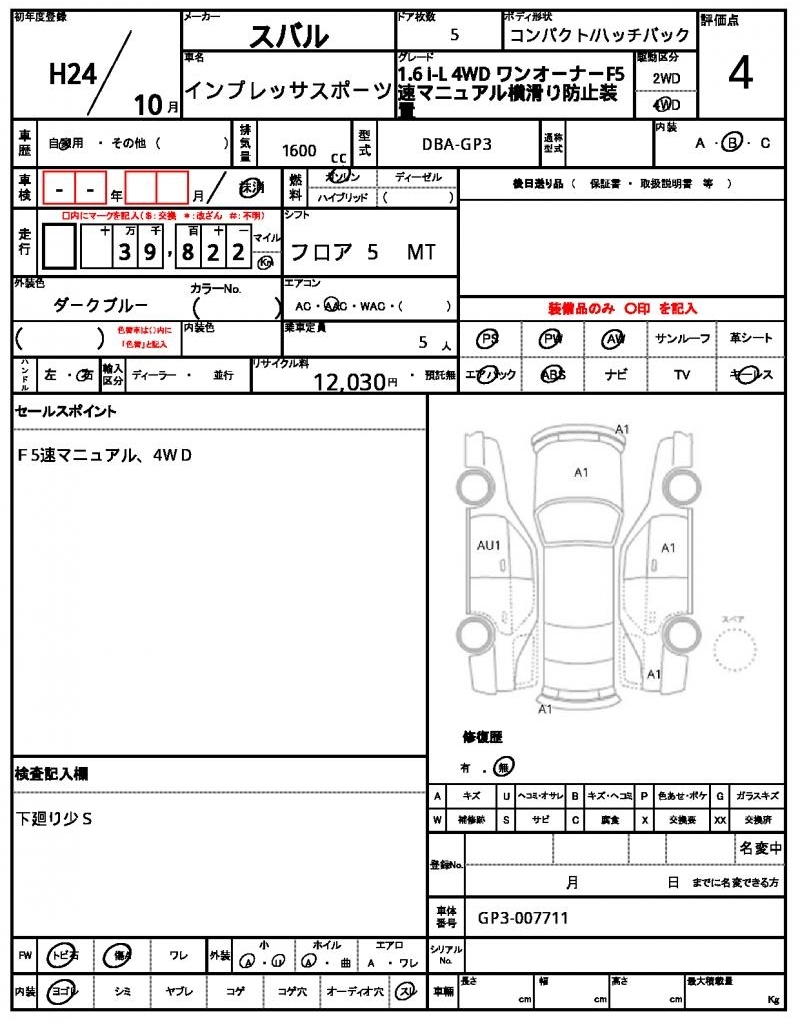 Все аукционы SUBARU IMPREZA SPORT