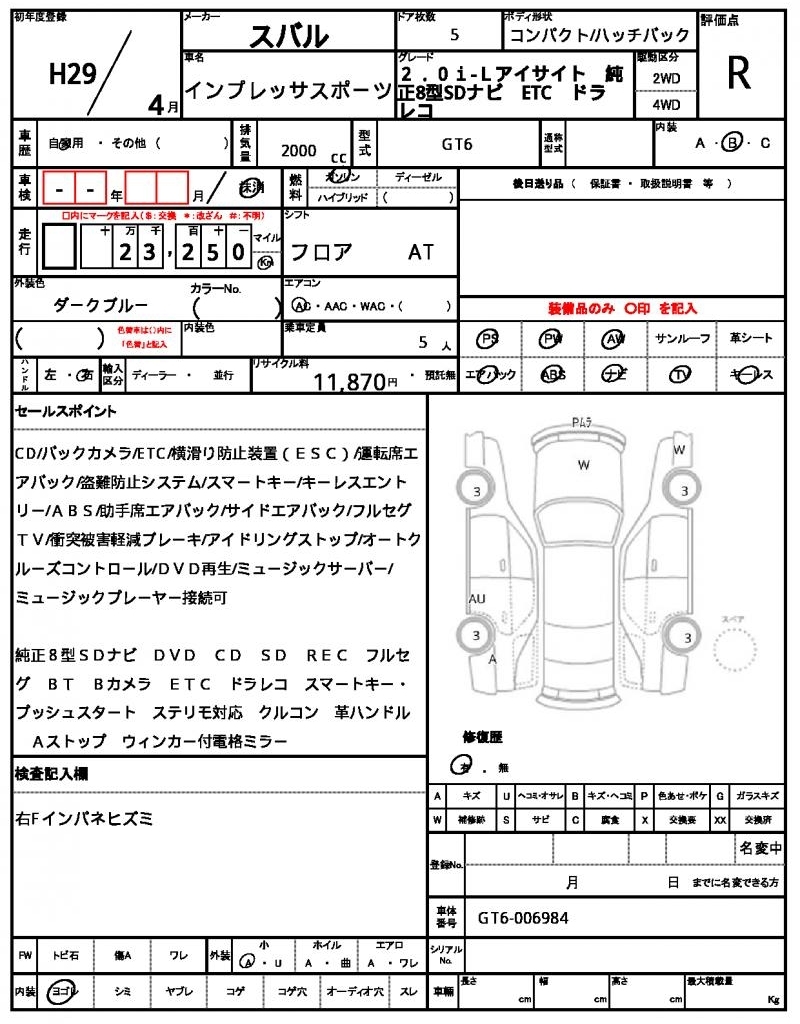 Все аукционы SUBARU IMPREZA SPORT