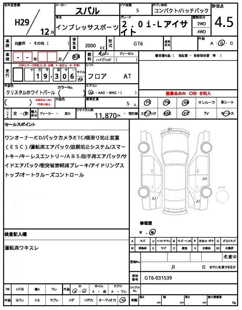 Все аукционы SUBARU IMPREZA SPORT