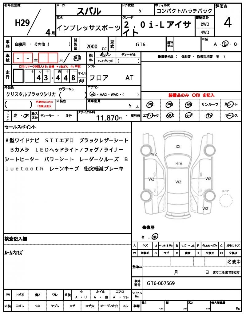 Все аукционы SUBARU IMPREZA SPORT