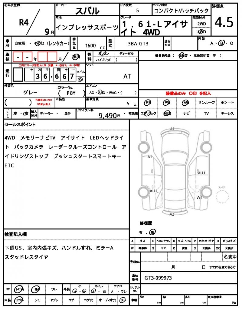 Все аукционы SUBARU IMPREZA SPORT