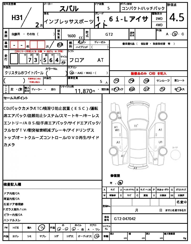Все аукционы SUBARU IMPREZA SPORT