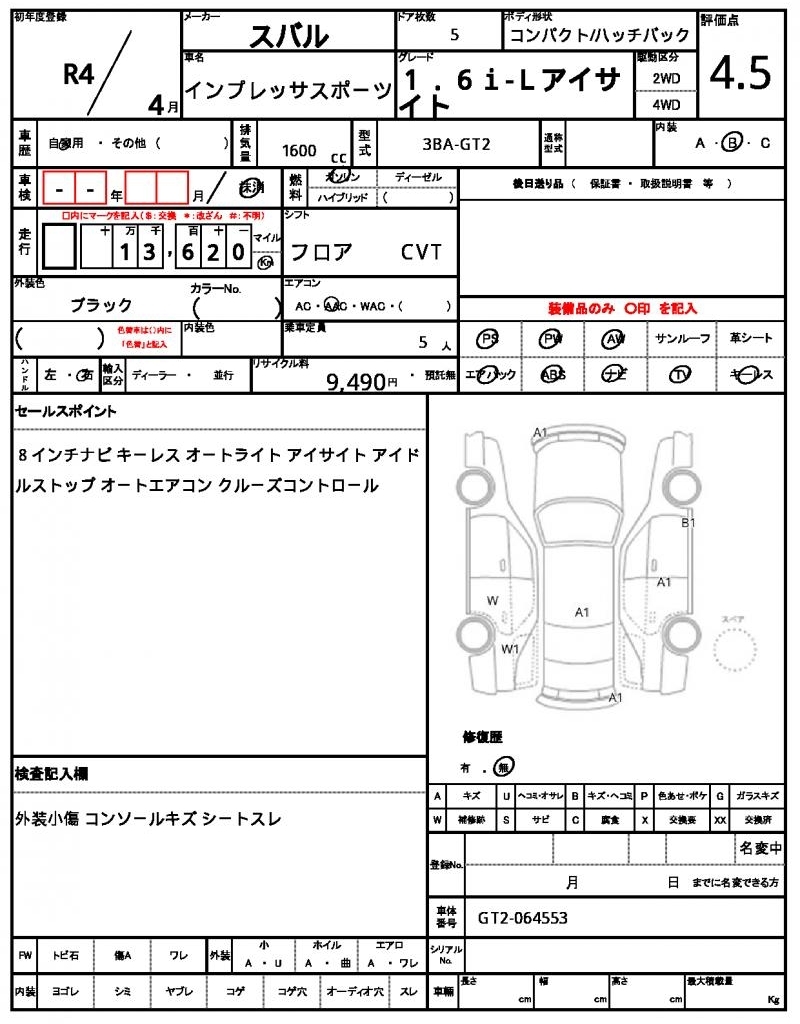 Все аукционы SUBARU IMPREZA SPORT