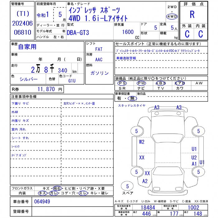 Все аукционы SUBARU IMPREZA SPORT