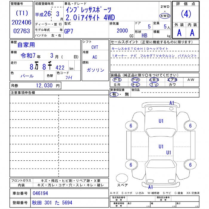 Все аукционы SUBARU IMPREZA SPORT