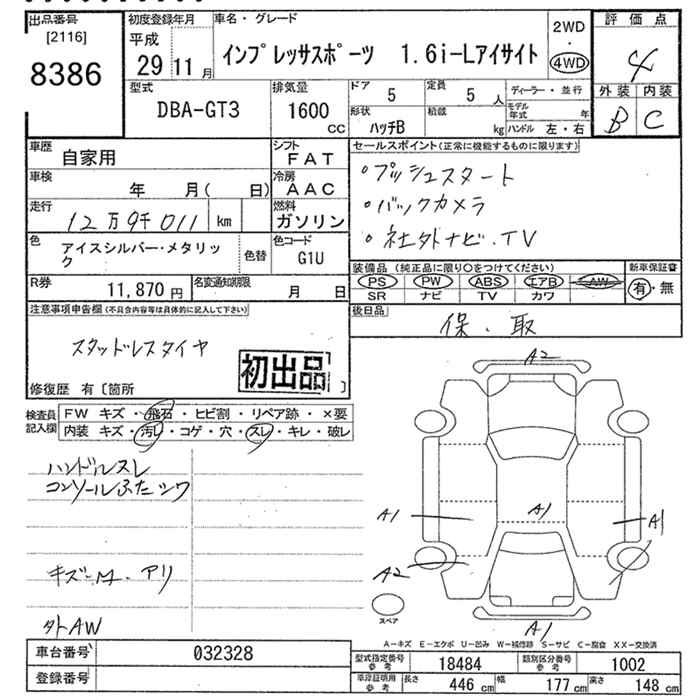 Все аукционы SUBARU IMPREZA SPORT
