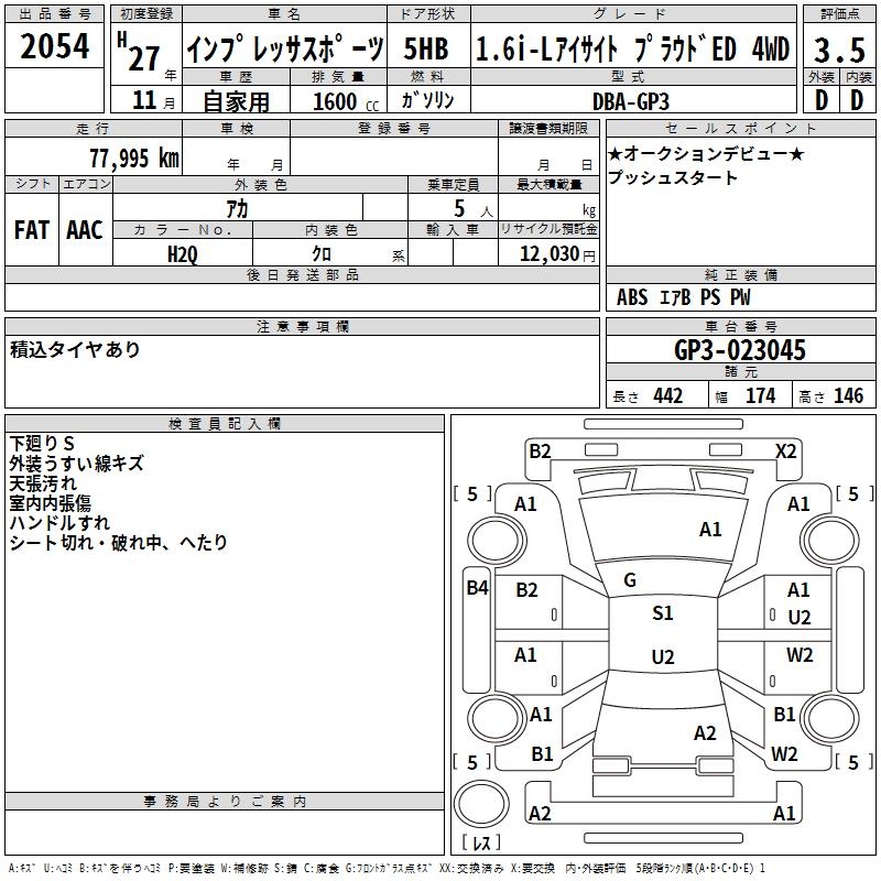 Все аукционы SUBARU IMPREZA SPORT